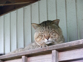 出窓の上にいる。 ボスとあだ名している野良猫。デカい。そしてデブい。
