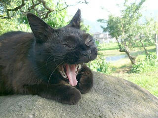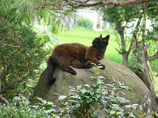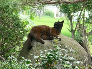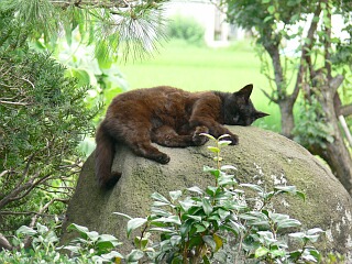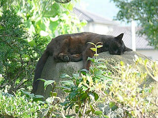 また庭石で寝てる。 石はひんやりして気持ちイイのかね。